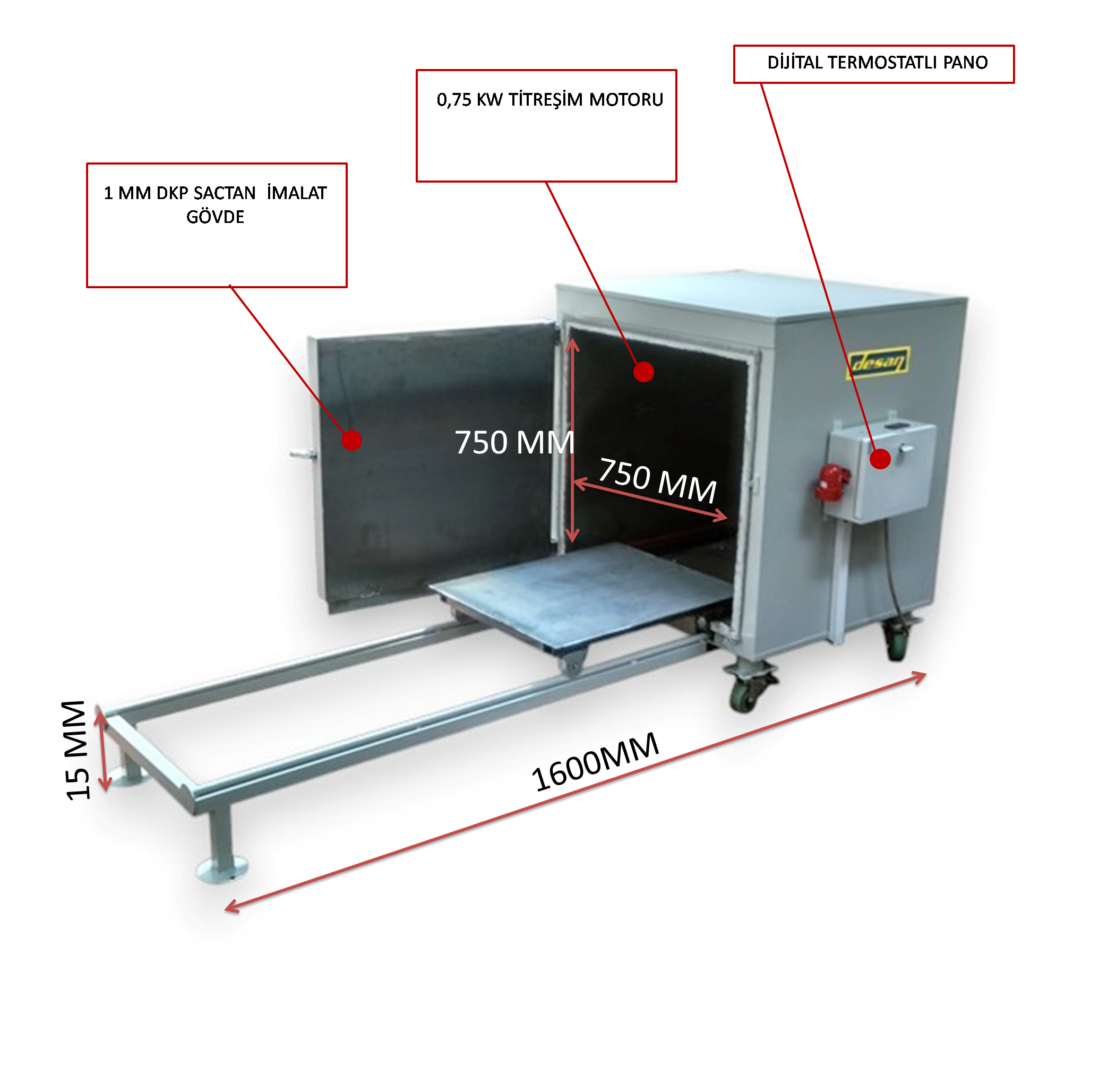 - Ayarlanabilir Sıcaklık Aralığı: Kullanıcıların farklı kurutma işlemleri için ihtiyaçlarına uygun olarak 30°C ile 250°C arasında sıcaklık ayarlama imkanı sunar.